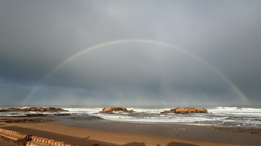 Essaouira. Der Abend des 2. Januar 2026. Wir stellen die Handywecker auf 03:30. Fahrzeit nach Casablanca ca. 5 h. Durch die Nacht über marokkanische Landstraßen. Menschen in dunklen Klamotten auf der Straße, Esel, Katzen, Mopeds ohne Licht, Schlaglöcher. Es wird empfohlen, nicht nachts zu fahren. Irgendwo im Web. Es gibt viele Marokko-Empfehlungen im Web in Richtung „Wasser nur aus verschlossenen Flaschen“. Dann kannst du Marokko auch gleich lassen.